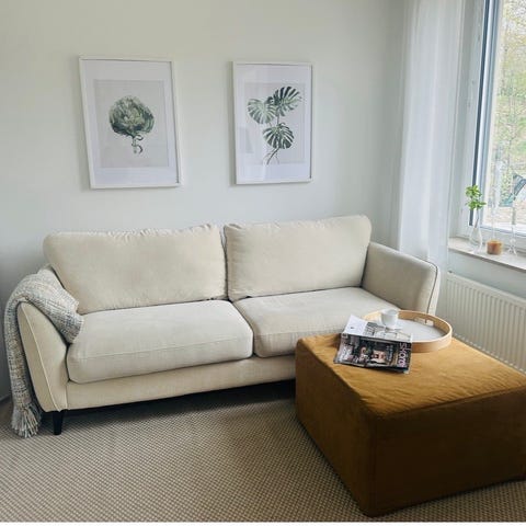 Köpte föra året, i december ! Säljer på grund av flytt. Schäslongsoffa ALLESE vänster beige tyg