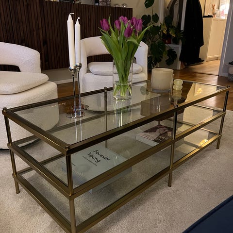Soffbord med mattsvart ram. Glasskiva upptill.