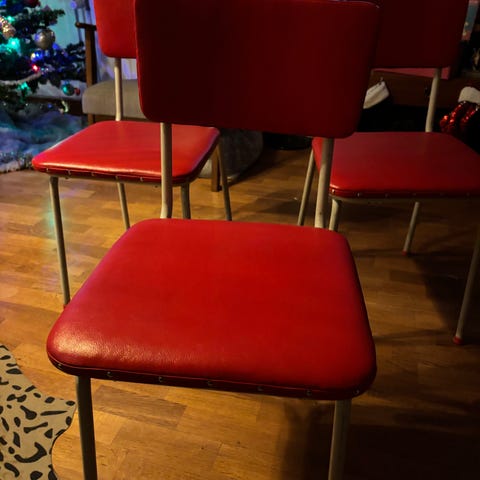 Stolarna är i gott strukturellt skick och är "underbara" att sitta i, men de har blivit lite smutsiga under tiden på dansskolan (se bilder). Med en enkel textilrengöring eller en omgång med en mattvätt/våt-dammsugare kommer de bli som nya igen!