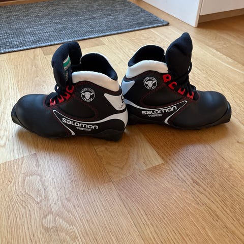 Pjäxor för längdskidor. Salomon, SNS. Storlek 37 1/3. Använt skick (se bilder) men fungerar precis som de ska. Perfekt för nybörjaren eller den som vill testa på längd. Finns på Kungsholmen.