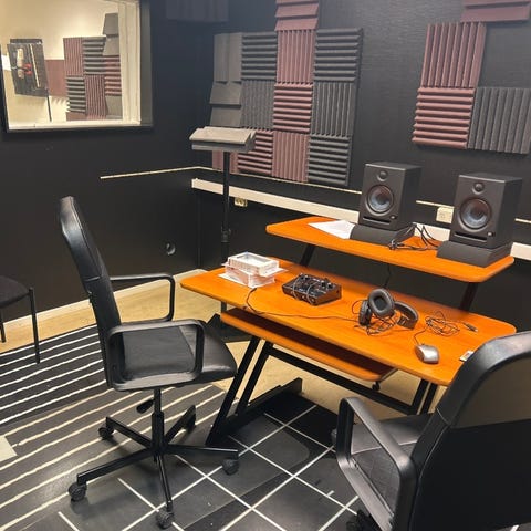 Sju st mikrofonstativ i olika varianter inklusive roadcase och svanhalsar. Caset är 120 x 40 x 40