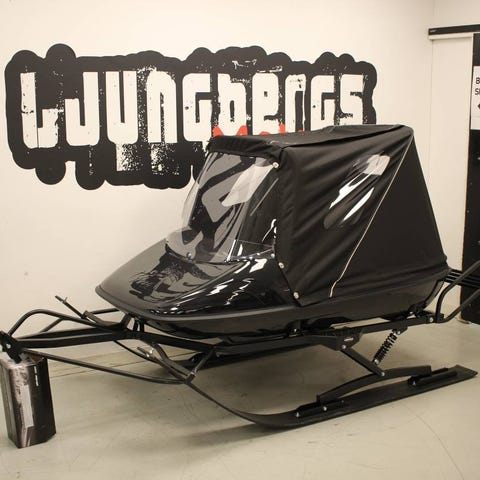 Både plastlåda och fäste för snowracers är bultade så det är inte gjort någon åverkan på pulkan. Enkelt att plocka bort båda, om man inte vill använda dem.