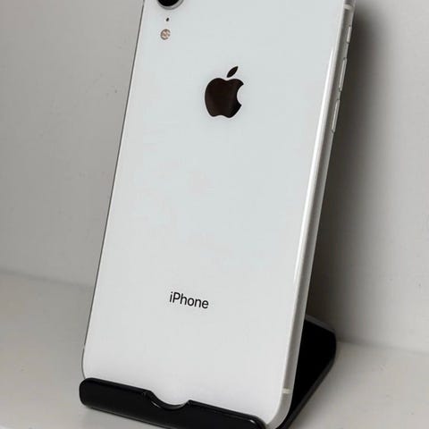 Apple iPhone Xr mobiltelefon med 128 GB lagringskapacitet. Enheten har en vit baksida och är utrustad med iOS version 18.7.2. Modellnummer MRYD2QL/A. Mobiltelefonen är lämplig för användare som söker en smartphone med god lagringskapacitet.