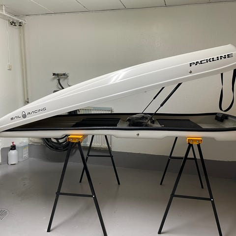 Äldre fullt fungerade takbok säljes. Stötdämpare utbytta. Boxen har lås och nyckel.