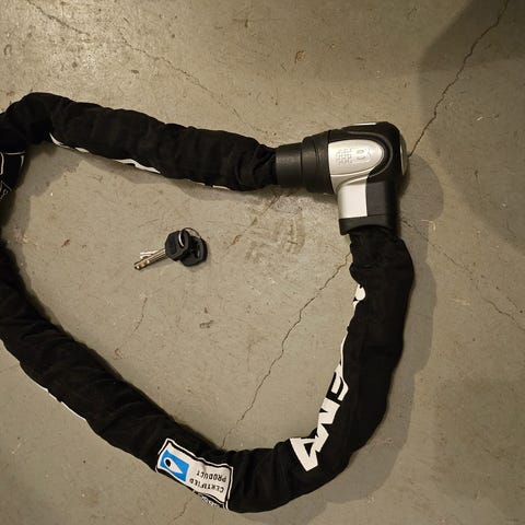 Försäkringsgodkänt (SSF-godkänt) lås med kedja.