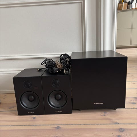 Säljer ett par Audio Pro Addon T20 aktiva golvhögtalare i gott skick. Perfekt för musik och TV-ljud med kraftfullt hifi-ljud i elegant, stilren design.