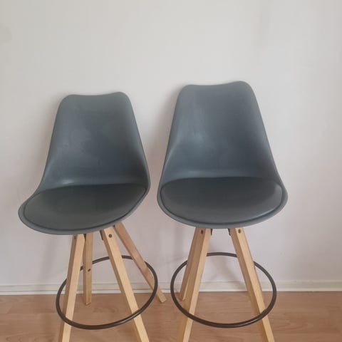 Skick: Använda, i gott skick. En stol har en mindre spricka i sitsen,.