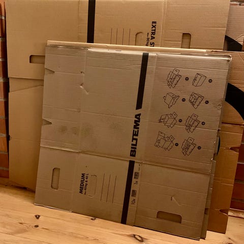 Flyttkartonger 20kr styck. Just nu sex tomma. Kan bli fler. Bra tjock kartong.