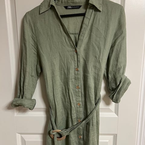 Zara vardagsklänning i storlek S för kvinnor. Klänningen är svart och grönDen har ett mönster med geometriska former och är lämplig för vardagligt bruk.
