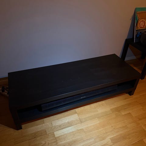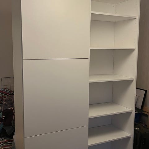 Sideboard/tv-bänk Bestå från Ikea. Vitrinskåp med låda under och ett skåp med tre hyllplan. Ben Nannarp medföljer. Även belysning i vitrindelen medföljer. Svag missfärgning på toppskivan, dock inget som stör. I övrigt mycket fint skick.