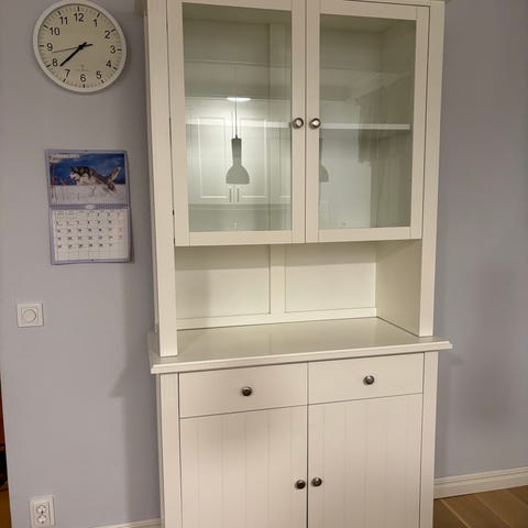 Mycket stabilt skåp h 170, b 46, d 68. 4st svängbara hjul varav 2st låsbara. Säkerhets glas i dörren. Valfri inredning enligt överenskommelse. Finns max 6st vita hyllor. Olika iso backar med tillbehör för fack, se bild. Pris 2200kr. Mvh Kjell Åmål