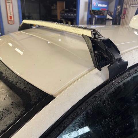 Volvo takräcke i svart färg. Passar för montering på taket av fordon för att transportera extra last. Tillverkad av robust material för hållbarhet och funktion. Aldrig varit i bruk.