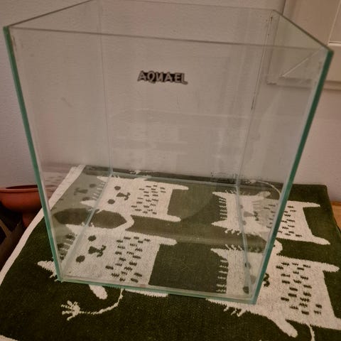 Akvarium 35 x 20 x 25 cm hög. Volym ca 15 liter. Vissa tillbehör kan skickas med. Hämtas i Rimbo.