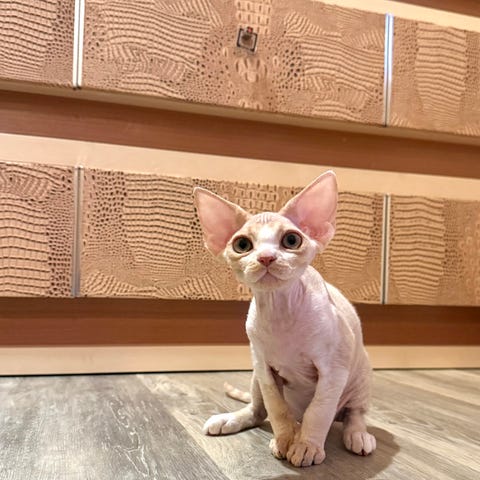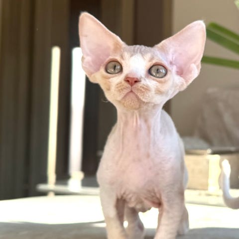 Allmänt är Devon Rex en mycket social ras. Alltid nyfikna och beroende av sällskap. De bör alltså hamna i ett hem där de inte lämnas ensamma för mycket och det är en stor fördel om de bor med kattkompis el dyl. Vi kan ev. hjälpa till med leverans.