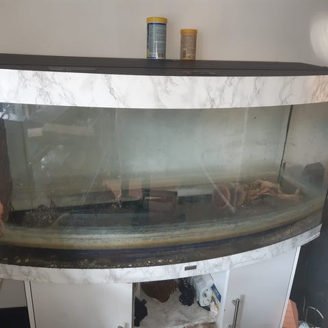 Akvariet är i gott skick men eftersom det inte har använts på länge