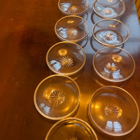 Duka glas skål med texturerad yta. Skålen är tillverkad i klart glas och har en form som liknar ett löv.