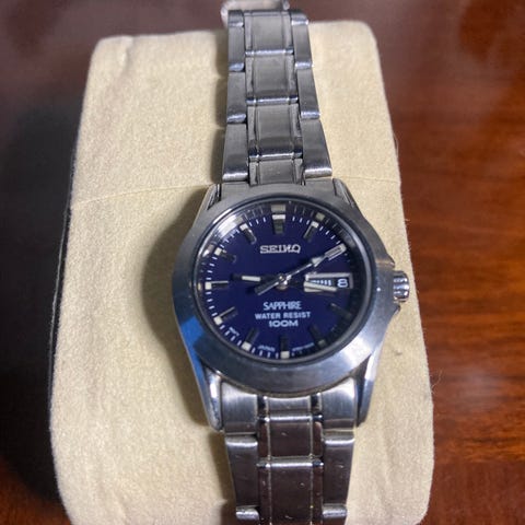 Seljes Seiko 43mm. Kinetic herr klocka i rostfritt stål. Vattentålig till 100M. Skada på glaset på höger sida men påverkar inte klockans funktion och har använts inte så mycket.