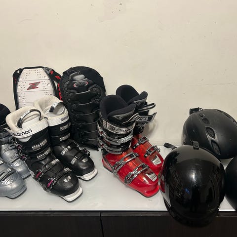 Nordica slalompjäxor , skidbyxor, jacka junior, slalomhjälm, ryggplatta