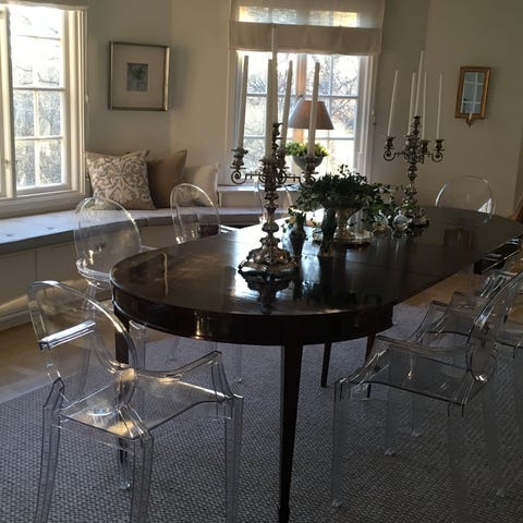 Välhållet matbord i masurbjörk med 2 iläggsskivor. Varje skiva är 50 cm. (155/255)