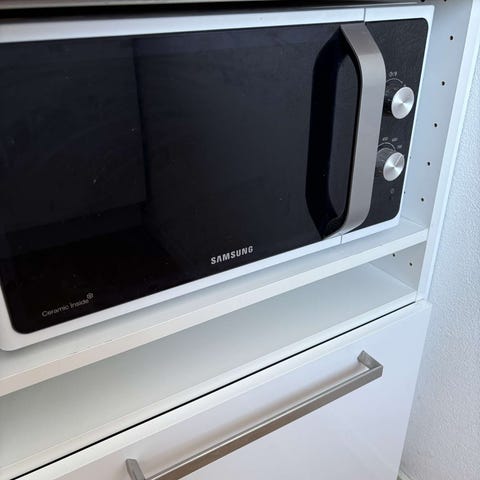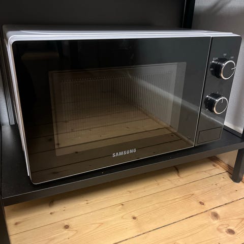 Sharp mikrovågsugn i svart färg. Mikrovågsugnen är avsedd för uppvärmning och tillagning av mat med mikrovågsteknik.