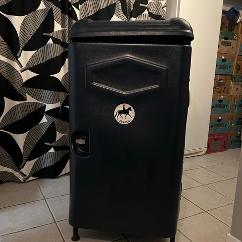 Säljer ett låsbart sadelskåp med plats för två sadlar.