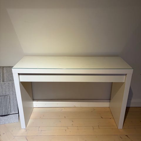Ikea malm toalettbord/sminkbord med glas skiva säljes, i bra skick ser inga skavanker.