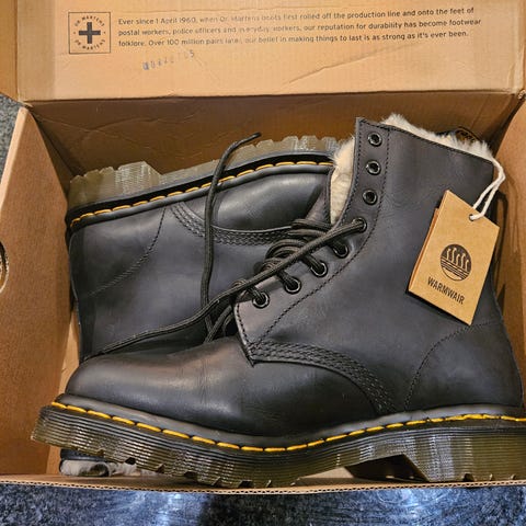 Skorna är bruna och har en varm, mjuk foderinsida som passar för kalla väderförhållanden. Yttersulan är slitstark med bra grepp. Modellen är designad för att ge komfort och skydd under vintersäsongen. För mer information om skon se Dr Martens egna beskrivning: