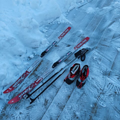 Stl 34 pjäxor, stavar 120cm, skidor 160 cm