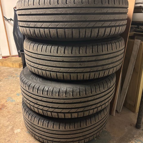 Däcken är i mycket fint skick, jämnt slitna, inga skador eller lagningar.