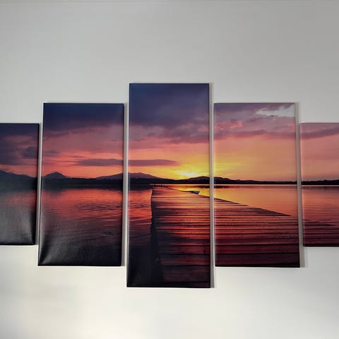 Tavla från IKEA med motiv av brygga och sjö i sepia. Mått 120x80cm.