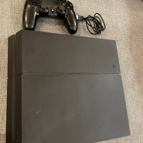 Playstation 4 spelkonsol i svart färg. Inkluderar två trådlösa handkontroller. Används för spel och multimedia.