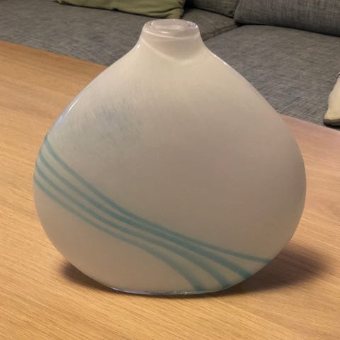 Avlång vas i blått säljes för 200kr. Inga skavanker, är i bra skick
