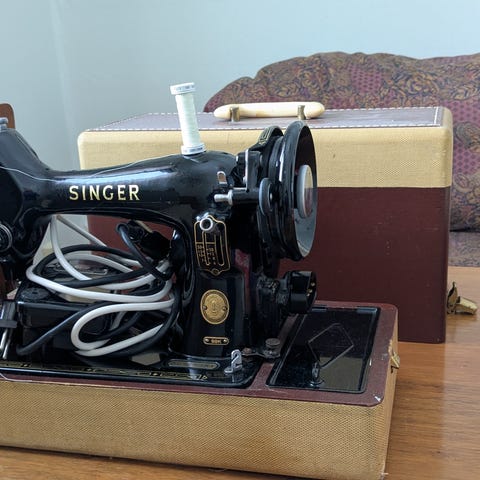 Säljer en retro Singer symaskin med originalbord .Symaskin är fint skick och fungerar som den ska.