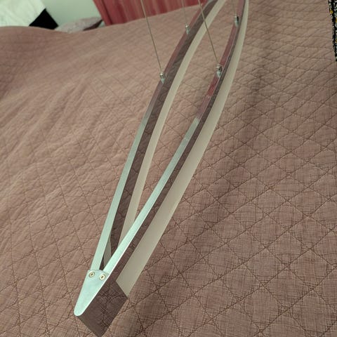 Sladdarna hänger ner sig lite mer med tiden när man låter lampan hänga uppe, man kan också skruva åt armarna och själva lamphållarna så att allt sitter rakt.
