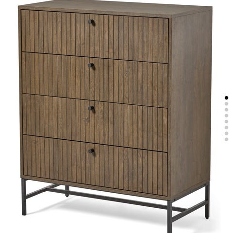Säljer en vit byrå med 6 lådor.