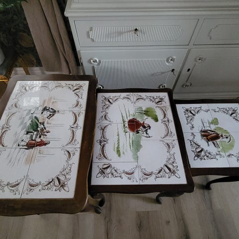 Avsmalnande ben, beslag och fot avslutningar av mässing, höjd 56, 50 x 35 cm