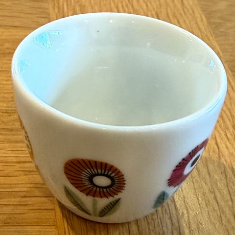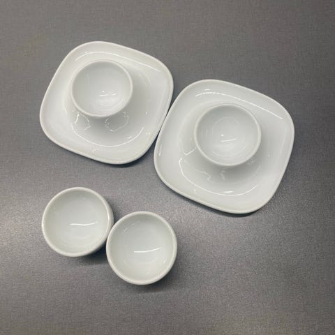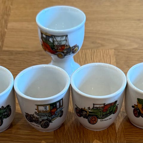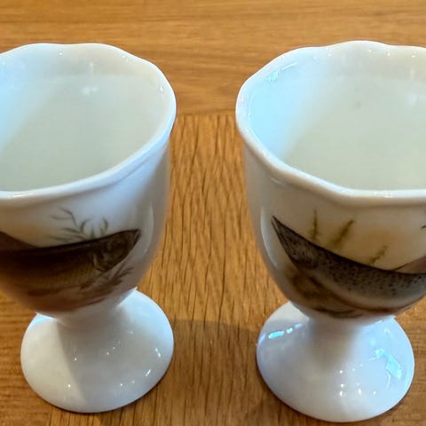 Två stycken äggkoppar märkta E och Egg från Design Letters. Stilren design. Ca 4,5 cm höga. Hela men lite blekta / skavda / repade i den svarta färgen. Se bilder för egen bedömning och hör av dig om du har frågor.