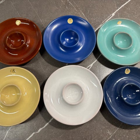Äggkoppar med vintage bilar - Porslin - England - 6 st + 1