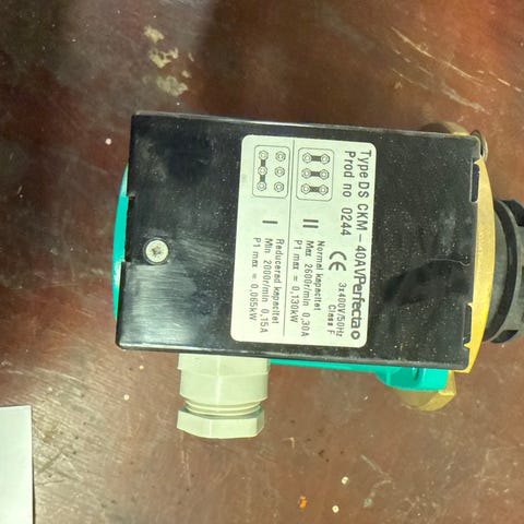 Perfecta Core cirkulationspump med anslutningar i metall. Produkten används för cirkulation av vätskor i värme- och kylsystem.