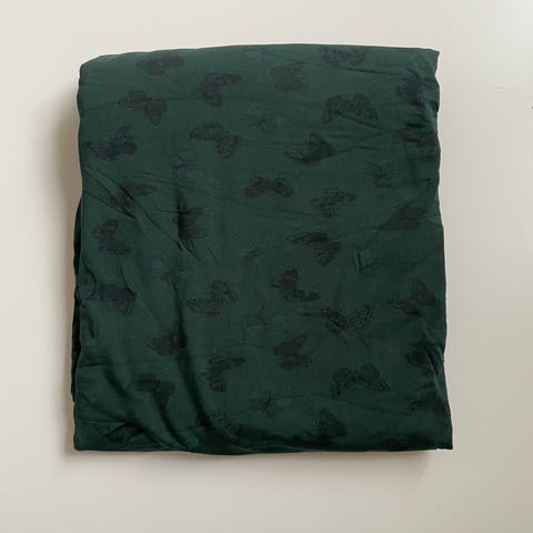 Tygpaket bestående av olika tyger i flera färger, inklusive rosa med mönster, grön metallic, mörkgrön samt röd. Materialen varierar och kan användas för sömnad eller dekorativa ändamål.