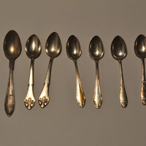 NS Alpacca 4st antika kaffeskedar teskedar skedar nysilver stämplad vacker dekor