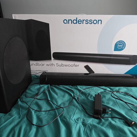 En sparsamt använd Andersson SRS 2.4 är ett kraftfullt högtalarsystem med en soundbar och en subwoofer. Det passar perfekt att koppla ihop med din TV för att få en härlig ljudupplevelse. Med ACR-funktionen kan du enkelt spela upp ljud från din TV med en enda kabel. Systemet har också en Bluetooth-funktion så du kan parkoppla exempelvis din mobil eller surfplatta och strömma musik, en podcast, en ljudbok eller vad du önskar att lyssna på. Andersson SRS 2.4 har en justerbar bas och 5 olika EQ-nivåer och det gör det smidigt för dig att skapa den ljudbild som du trivs bäst med. Det medföljer en fjärrkontroll.