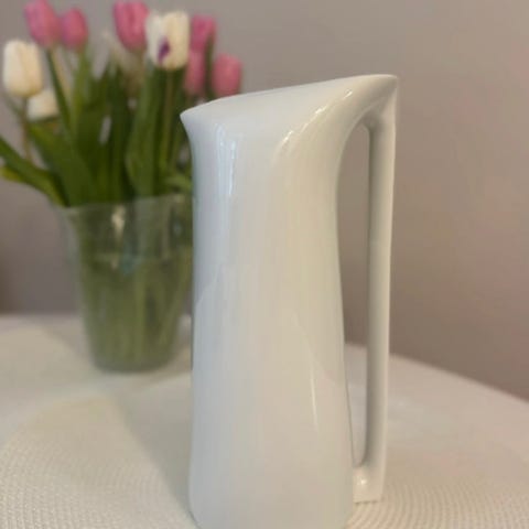 Söt liten mjölk- eller gräddkanna designad av Stig Lindberg i vit porslin. Jag tycker att den ser ut som en fågel. Ca 9 cm hög där den är som högst. I fint skick förutom ett litet märke på foten - se bilder. Hör av dig om du har frågor. Jag packar väl men ansvarar inte för transportörens slarv. Se gärna mina andra annonser.