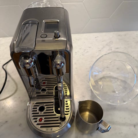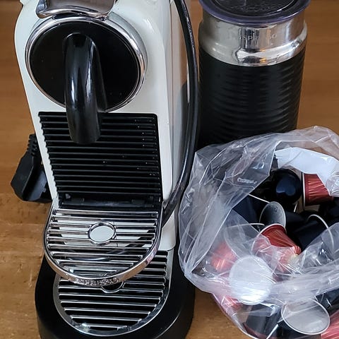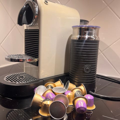 Nespresso Citiz & Milk espressomaskin i vit färg. Maskinen är utrustad med en mjölkskummare för att kunna göra kaffevarianter med mjölkskum. Designad för att användas med Nespresso-kapslar.
