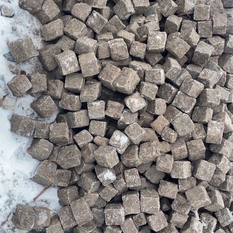Tidigare använda som golv på terrass. Olika storlek och form, se bild. Totalt några hundratal stenar.