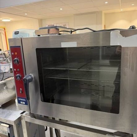 Rational ugn är en elektrisk ugn tillverkad i rostfritt stål. Den är utrustad med digital kontrollpanel och glaslucka för insyn. Produkten är avsedd för professionellt köksbruk och har funktioner för effektiv matlagning. Behöver en service för att kunna köra igång ingen.
