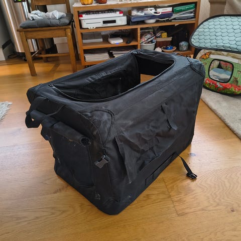 Stabil och praktisk transportbur, lätt att hantera.