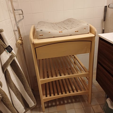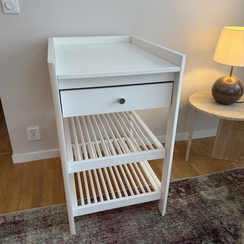 Säljer ett fint och jättebra skötbord av märket troll royal. Kan användas både som byrå och skötbord med avtagbar ram.