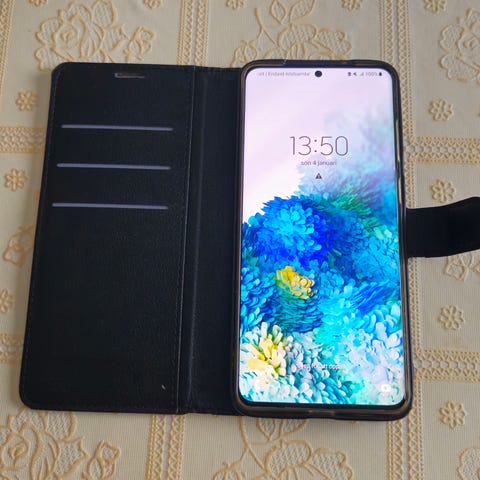 Samsung S20 128GB (himmel blå) med genomskinligt skal och extra linsskydd till.