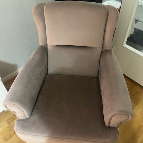 Fåtölj i bra skick, har ett mindre märke på armstödet.